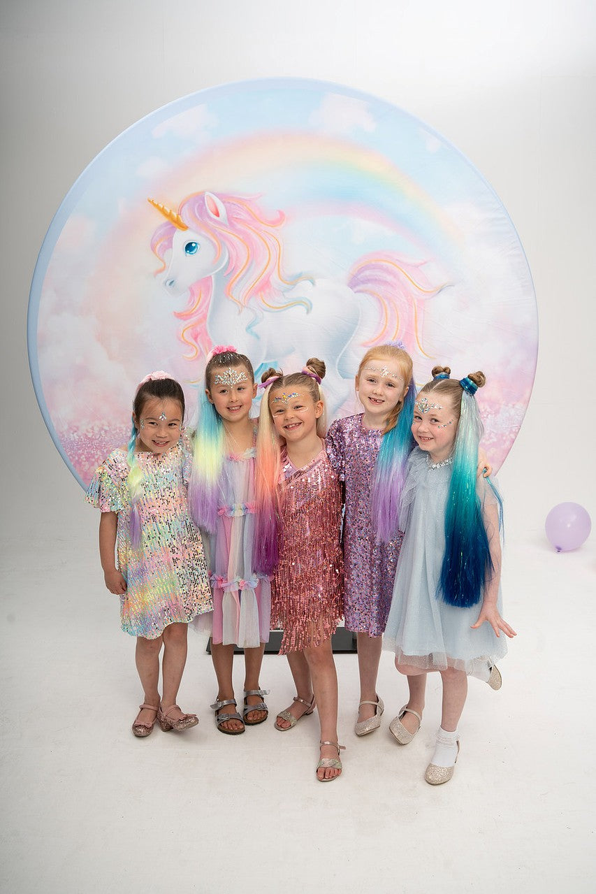 'Hollywood Glam' set up, hair braiding or ponytail extensions, hair glitter, hair accessories, face gems/glitter. Maximum 8 children. Character visits, crafting activities and bespoke decorations also available upon request. Enquire for a tailored quote.
